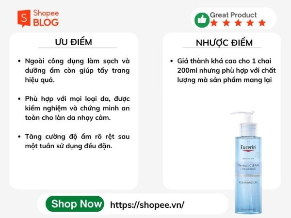 Ưu và nhược điểm của Eucerin pH5 Facial Cleanser Sensitive Skin (Nguồn: Shopee Blog)Đánh giá sản phẩm