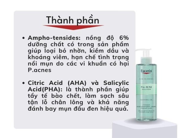 Thành phần sữa rửa mặt Eucerin Pro Acne Solution Cleansing Gel (Nguồn: Shopee Blog)Ưu điểm và nhược điểm