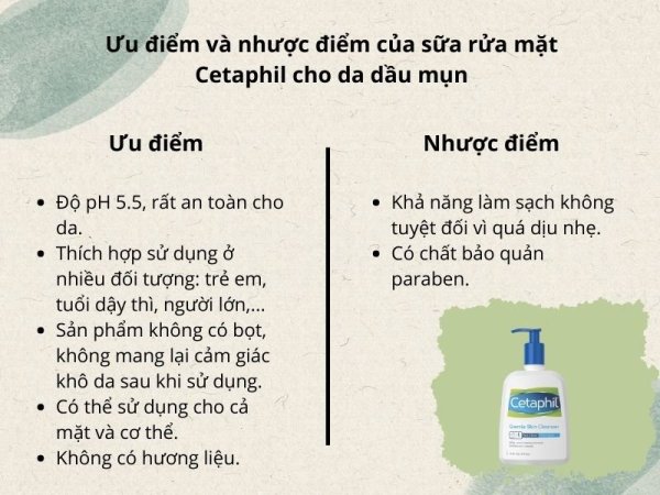 Cetaphil có khả năng làm sạch da dịu nhẹ, kể cả những làn da nhạy cảm nhất. Sữa rửa mặt Cetaphil có thể sử dụng cho nhiều độ tuổi khác nhau và được đánh giá là sữa rửa mặt cho da dầu mụn tuổi dậy thì.