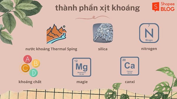 - Chất khoáng: hàm lượng khoáng với liều lượng cực thấp trong sản phẩm sẽ giúp cho làn da không bị khô, có được độ ẩm cần thiết.
