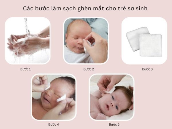 Cách làm sạch ghèn mắt cho trẻ sơ sinh (Nguồn: benhviendakhoaphuongdong.vn)Do bé chạm tay bẩn lên mắt