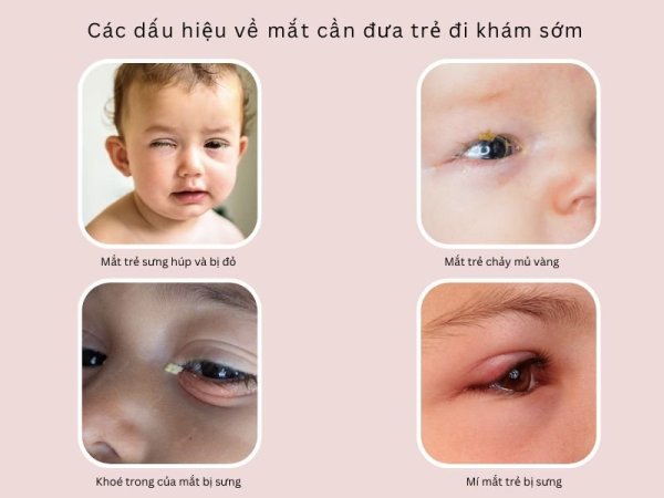 Sau khi thực hiện cách vệ sinh mắt và nhỏ mắt nhưng tình trạng vẫn trở nặng, bạn cần đưa trẻ đến bệnh viện thăm khám để tìm ra nguyên nhân và điều trị kịp thời. Dưới đây là một số biểu hiện cho thấy bạn cần đưa bé đi bệnh viện để được khám kỹ hơn:
