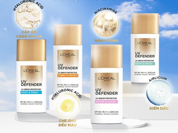 L’Oreal Paris UV Defender là kem chống nắng không thấm nước thế hệ mới của thương hiệu L’Oreal. Sản phẩm này được hãng giới thiệu là sở hữu công nghệ tiên tiến và mang đến hiệu quả chống nắng và chống nước tối ưu. Kem chống nắng L’Oreal Paris UV Defender có 4 loại phù hợp với từng loại da khác nhau.