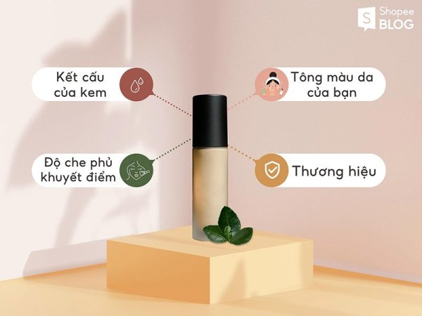 Một số tiêu chí cần quan tâm khi chọn mua kem nền cho da khô (Nguồn: Shopee Blog)- Kết cấu của kem nền: Kem nền thường có 5 loại kết cấu phổ biến nhất là dạng lỏng, dạng kem, dạng phấn, dạng serum hoặc kem nền gốc nước. Mỗi loại sẽ có ưu điểm và nhược điểm riêng. Kem nền dạng lỏng, dạng kem và kem gốc nước sẽ phù hợp với những bạn có làn da khô.