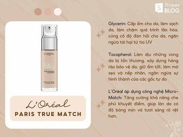 L’Oréal Paris True Match Super Blendable Foundation là dòng kem nền mỏng nhẹ cho da khô được đánh giá cao vì:
