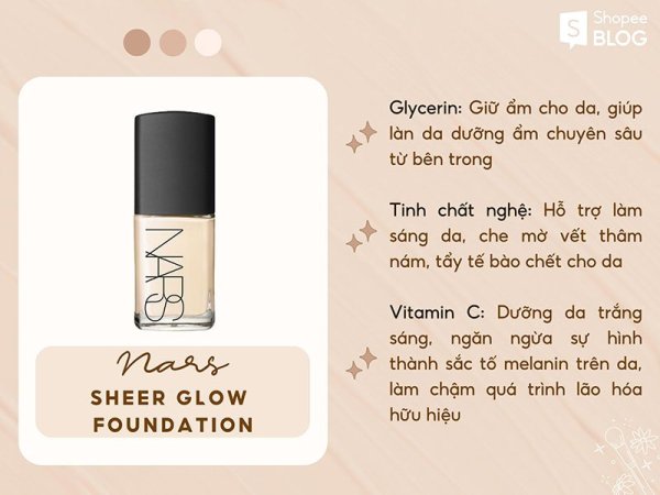 Thành phần chính của kem nền Nars nổi tiếng (Nguồn: Shopee Blog)Một số công dụng chính của kem nền cho da khô Nars là: