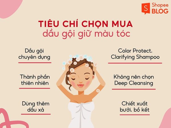 Một số tiêu chí cần chú ý khi mua dầu gội giữ màu tóc nhuộm (Nguồn: Shopee Blog)- Sử dụng dầu gội chuyên dụng cho tóc nhuộm.
