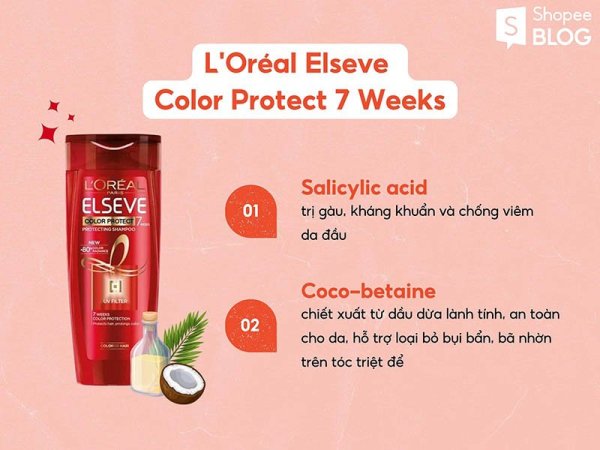 Thành phần chính của dầu gội L’Oréal Elseve Color Protect 7 Weeks (Nguồn: Shopee Blog)Công dụng nổi bật của sản phẩm là: