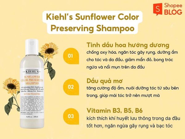 Dầu gội Yves Rocher Color Protection & Radiance (Nguồn: Shopee Blog)Dầu gội Kiehl’s Sunflower Color Preserving Shampoo