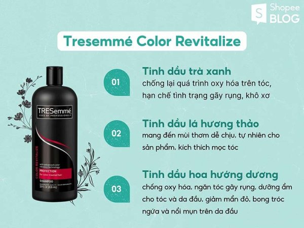 Dầu gội Tresemmé color revitalize (Nguồn: Shopee Blog) Mua Ngay> Xem thêm: Cách chăm sóc tóc nhuộm để tóc luôn khỏe và bền màu
