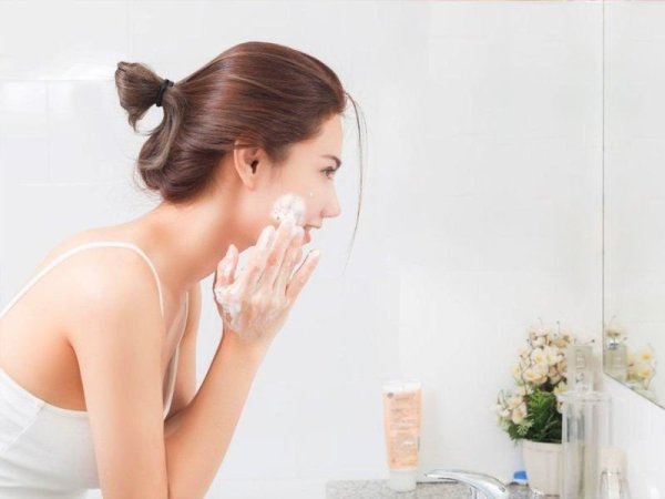 Tẩy trang giúp làm sạch kem chống nắng, lớp trang điểm và bụi bẩn trên da (Nguồn: Hoc11.vn)Làm sạch với sữa rửa mặt