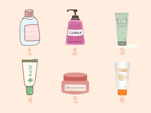 Các sản phẩm skincare cơ bản cho tuổi dậy thì gồm có: nước tẩy trang, sữa rửa mặt, dưỡng ẩm và kem chống nắng (Nguồn: Shopee Blog)Nên thực hiện các bước skincare cho tuổi dậy thì vào thời điểm nào trong ngày?