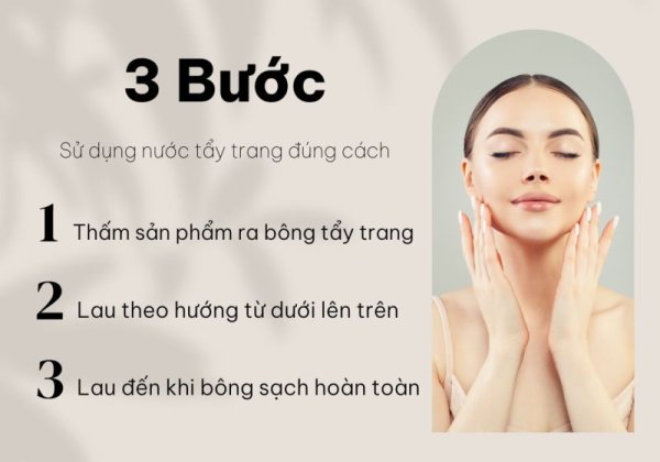 Khi sử dụng các loại nước tẩy trang cho da dầu mụn, bạn nên thực hiện đúng cách để đạt được hiệu quả tối ưu. Hãy tham khảo các thao tác khi sử dụng nước tẩy trang sau đây: