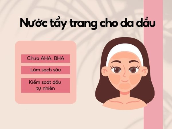 Lựa chọn loại nước tẩy trang phù hợp với da dầu (Nguồn: Shopee Blog)Các loại nước tẩy trang có chứa thành phần như Acid Salicylic, AHA hoặc những hoạt chất làm sạch nhẹ sẽ phù hợp với làn da dầu vì chúng có thể giúp loại bỏ dầu thừa và làm sạch lỗ chân lông hiệu quả. Một số loại tẩy trang phù hợp với da dầu có thể kể đến như: