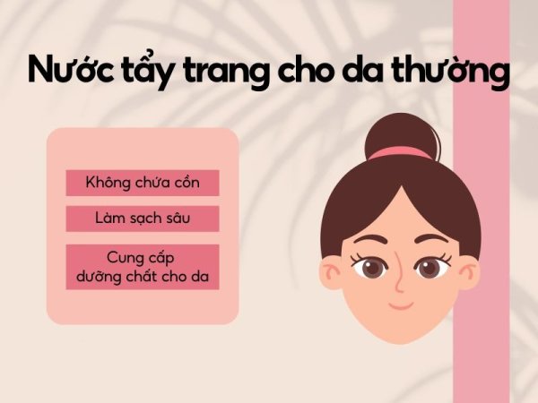 Khi lựa chọn nước tẩy trang cho da thường, bạn cần quan tâm đến khả năng làm sạch sâu và thành phần cung cấp dưỡng chất cho da. Điều này đảm bảo da được làm sạch sâu lỗ chân lông hiệu quả. Đồng thời, các loại tẩy trang có công dụng dưỡng da sẽ giúp tái tạo làn da, kích thích sản sinh collagen và phục hồi da giúp da săn chắc, sáng mịn.