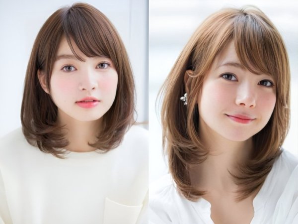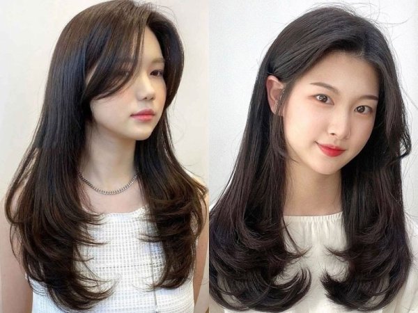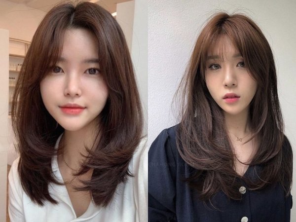 Đối với dáng mặt vuông tròn, kiểu tóc dài tỉa tầng layer với độ phồng tự nhiên sẽ khiến cho khuôn mặt bạn trông nhỏ lại rõ rệt. Kết hợp cùng kiểu mái chéo hoặc mái bay sẽ giúp che bớt phần gò má và xương hàm, làm khuôn mặt thanh tú hơn.