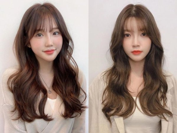 Tóc dài gợn sóng và mái thưa rất phù hợp với các bạn mặt vuông trán cao (Nguồn: Seoul Spa, Thời trang trẻ – Thanh niên) Bạn có thể nhuộm tóc để thêm phần trẻ trung và thời thượng (Nguồn: Tóc Đẹp 365, Dep365)Tóc layer uốn cúp kết hợp mái bay – kiểu tóc cho mặt vuông gò má cao