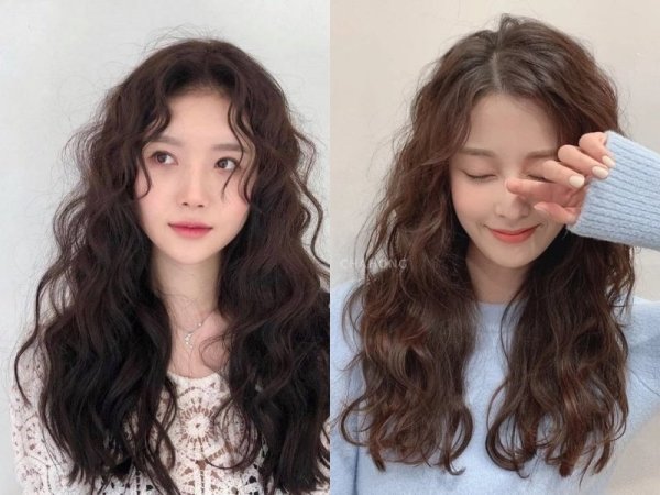 Tóc xoăn chữ C hợp với mặt vuông góc cạnh (Nguồn: Latest Hairstyle, Ánh Sáng) Nên uốn phồng chân tóc để tổng thể gương mặt cân đối và hài hòa (Nguồn: Ladystar, Xaydungso)Tóc dài xoăn lơi mái bay