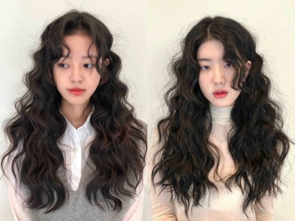 Tóc uốn đuôi gợn sóng nhẹ nhàng giúp tổng thể gọn gàng hơn (Nguồn: CHAHONG/kbeautyaddiction.com) Tóc xoăn đuôi thích hợp cho những nàng có mái tóc dài ngang lưng (Nguồn: HAUM)Tóc xoăn dài uốn lọn to