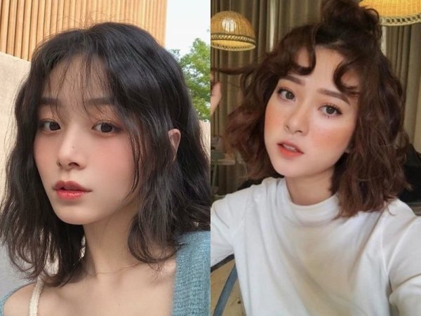Tóc xoăn ngang vai giúp khuôn mặt nhỏ gọn hơn (Nguồn: Dep365, VOH – Pinterest) Đừng quên dưỡng tóc để tránh tóc uốn bị bông xù (Nguồn: Trần Anko – Pinterest, divashop.vn)Tóc dập xù ngắn ngang vai