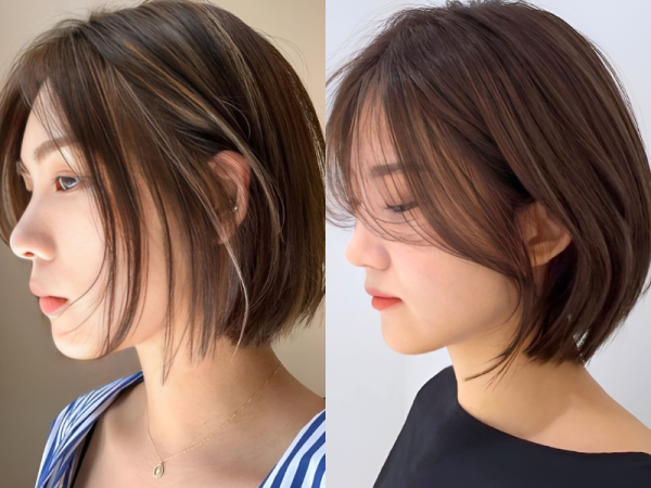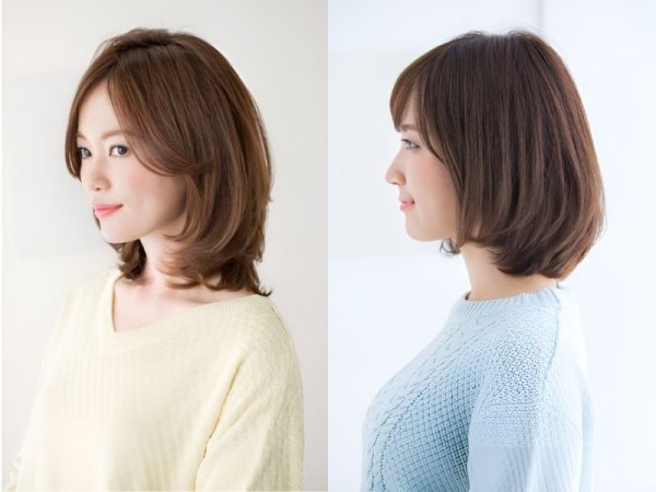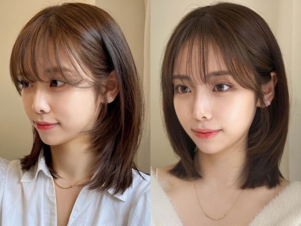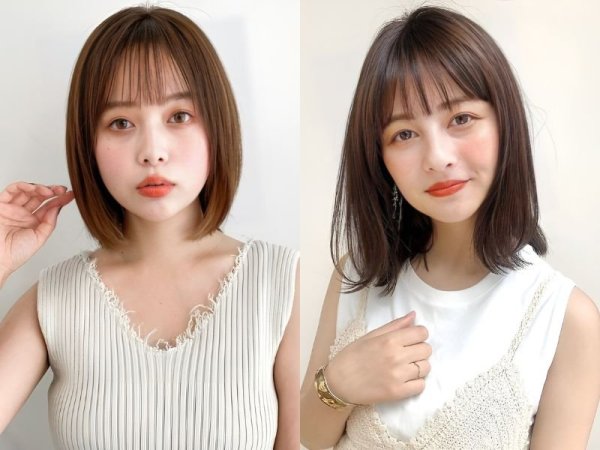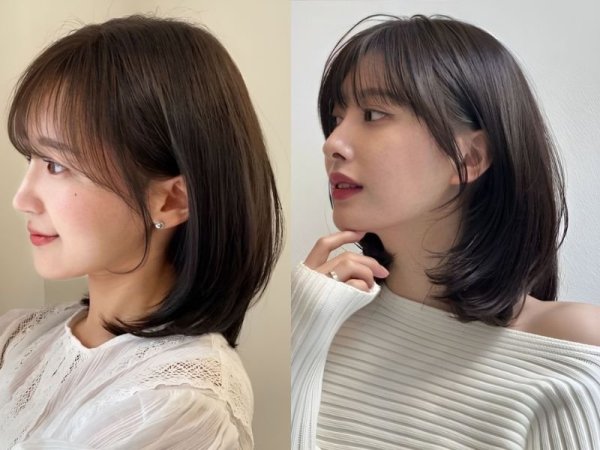 Tóc duỗi cúp ngang vai phù hợp với cô nàng tóc mỏng (Nguồn: Chann, kbeautyaddiction.com) Tóc ngang vai duỗi cúp dịu dàng, nữ tính (Nguồn: kbeautyaddiction.com, beauty.hotpepper.jp)Tóc dài duỗi cúp