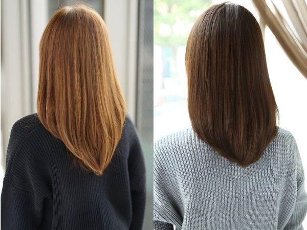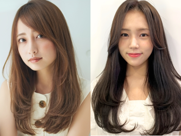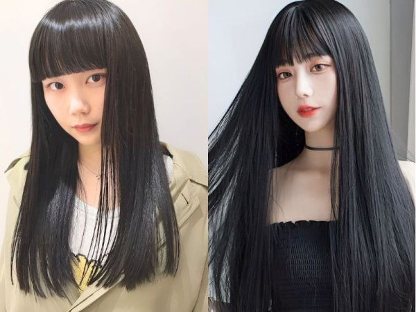 Tóc duỗi cúp đuôi ngang lưng đẹp tự nhiên (Nguồn: forte-group.jp, Yangzzz) Tóc dài duỗi cúp kết hợp mái lệch (Nguồn: beauty.yahoo.co.jp, kbeautyaddiction.com)Tóc layer duỗi thẳng