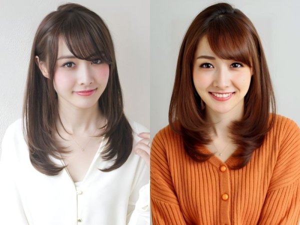 Nếu sở hữu gương mặt có phần tròn trịa, bạn nên lựa chọn kiểu tóc duỗi thẳng kết hợp với phần mái bay hoặc mái thưa. Dáng tóc này giúp che khuyết điểm một cách khéo léo, tạo hiệu ứng khiến gương mặt của bạn trở nên thon gọn, hài hòa hơn.