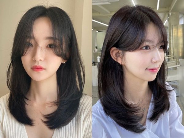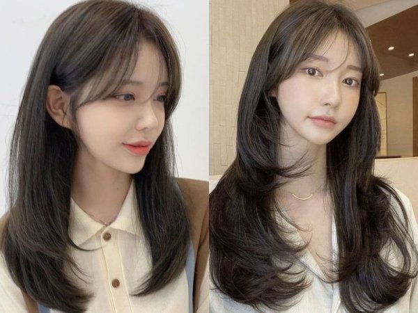 Tóc mái layer uốn giúp gương mặt trở nên mềm mại hơn (Nguồn: Seoul Center/ Dep365) Các bạn nữ mặt trái tim, mặt tròn nên thử kiểu tóc này (Nguồn: Dep365)Tóc mái rèm