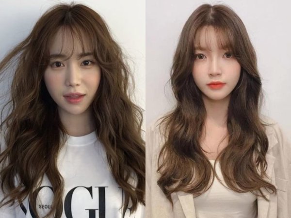 Tóc mái thưa duỗi thẳng tô đậm vẻ nữ tính của các bạn (Nguồn: 하움 – Pinterest/ KBeauty Addiction) Bạn có thể kết hợp tóc mái thẳng cùng phần tóc uốn xoăn lơi (Nguồn: kbeautyaddiction.com)Tóc mái thưa uốn phồng