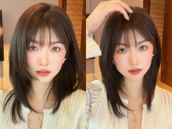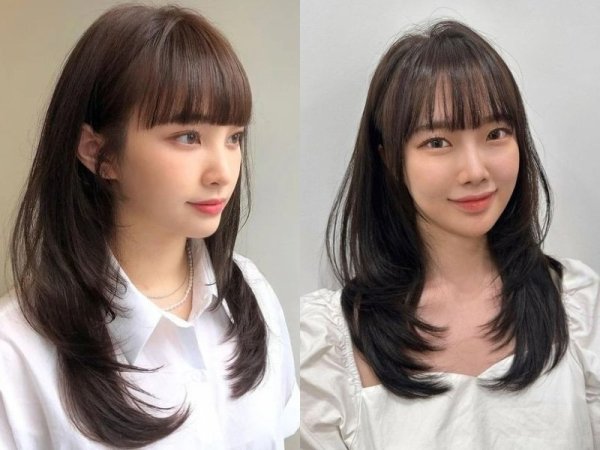 Tóc layer mái thưa cho mặt tròn có mái thưa đơn giản, dễ chăm sóc (Nguồn: moon19_6zz) Tóc mái thưa giúp gương mặt xinh xắn, dễ thương hơn (Nguồn: CHAHONG/kbeautyaddiction.com)Tóc layer mái bằng