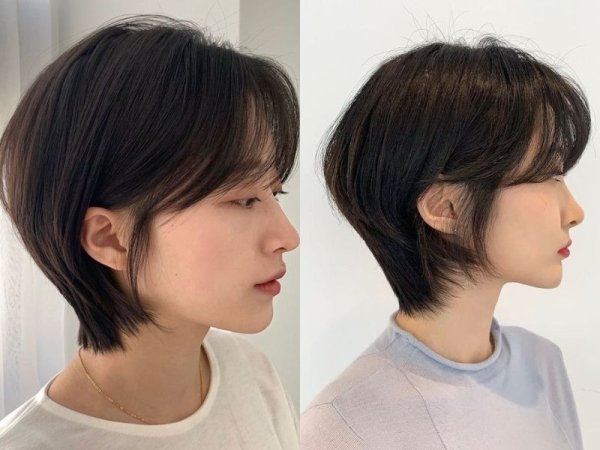 Tóc layer ngắn uốn cụp giúp tôn lên các đường nét trên gương mặt (Nguồn: Alice/CHAHONG) Kiểu tóc layer nữ mặt tròn uốn cụp vừa duyên dáng vừa có phần phá cách (Nguồn: kbeautyaddiction.com/CHAHONG)Tóc layer ngang vai uốn đuôi vểnh