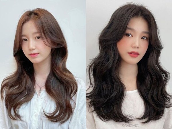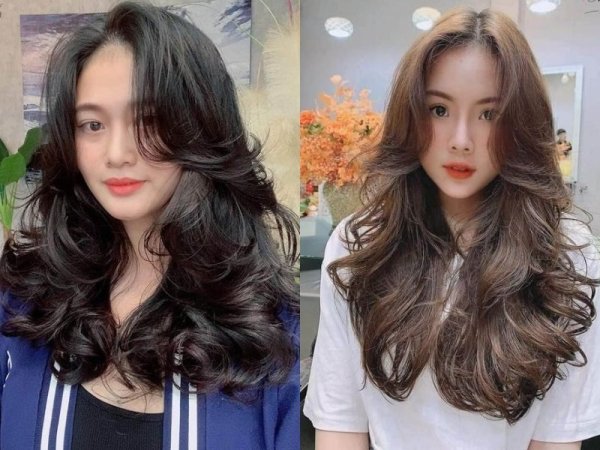 Kiểu tóc layer dài uốn gợn sóng cho mái tóc bồng bềnh (Nguồn: VOH) Kết hợp uốn phồng chân tóc và uốn mái bay dài giúp gương mặt sáng và tôn nét hơn (Nguồn: CHAHONG/venesis.media)Tóc layer xoăn uốn sóng lớn