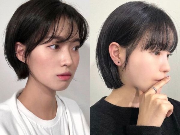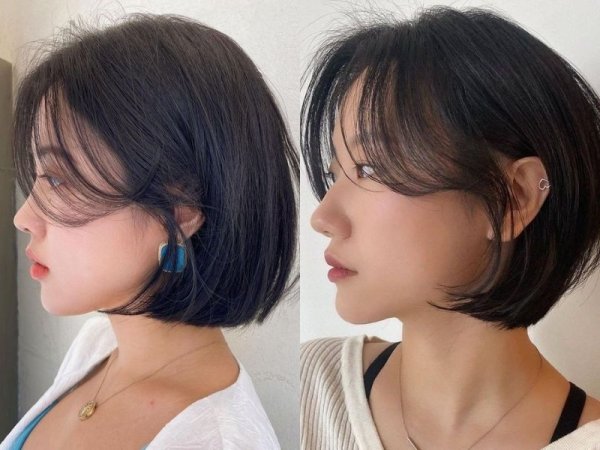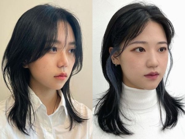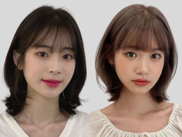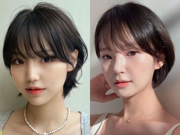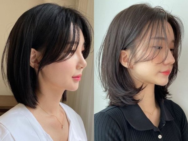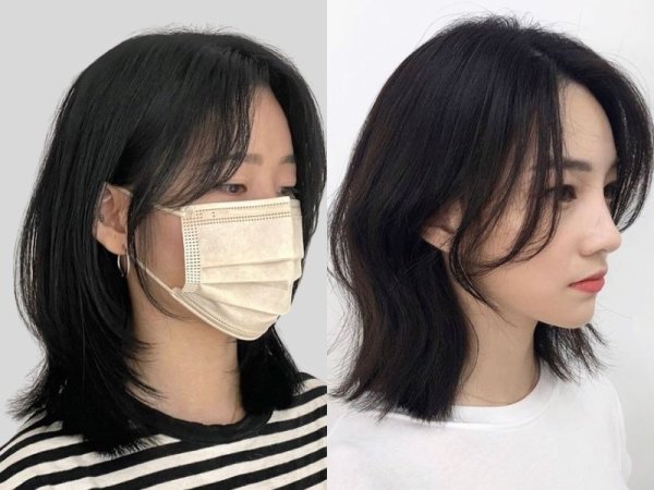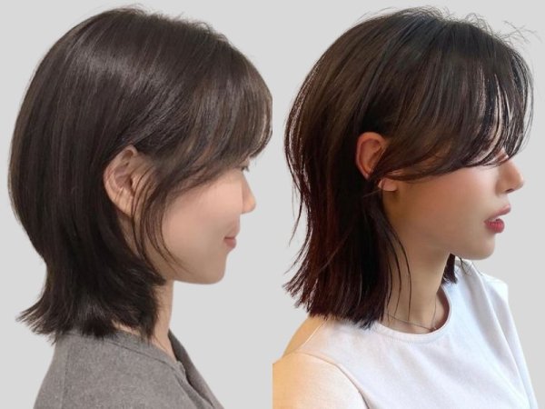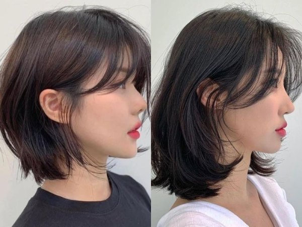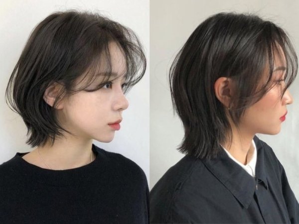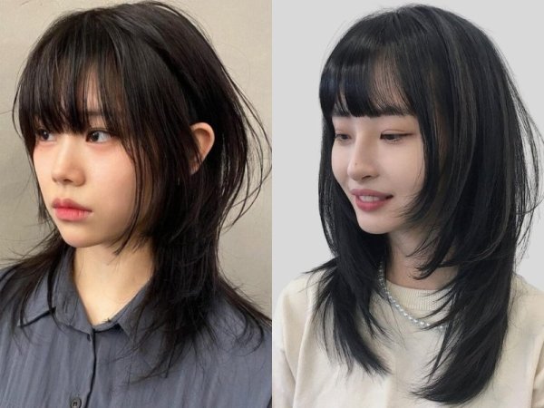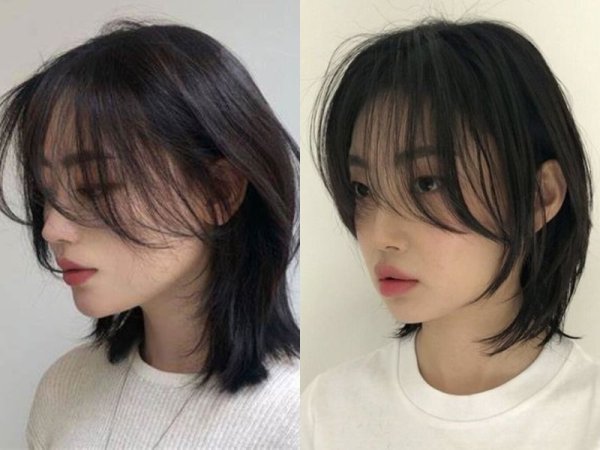 Tóc mullet layer không mái (Nguồn: chahong.com) Tóc mullet layer không mái (Nguồn: kbeautyaddiction.com)Tóc mullet layer bob cho mặt tròn