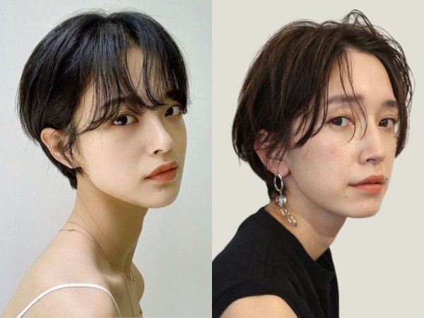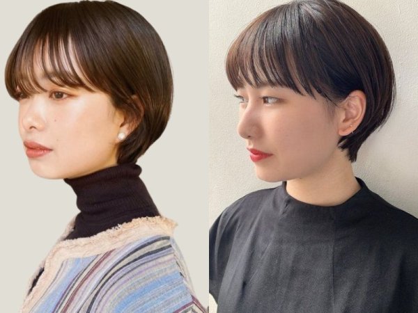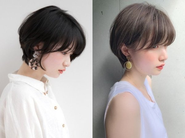 Tóc bob cắt ngắn không mái (Nguồn: chahong.com) Tóc bob cắt ngắn không mái (Nguồn: Dawson Chou, A_KNACK 어낵 – Pinterest)Tóc bob tém cho mặt tròn
