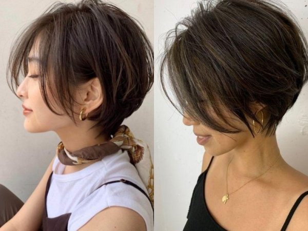 Tóc bob cắt dài trước ngắn sau (Nguồn: LALA – Pinterest, beauty.hotpepper.jp) Tóc bob cắt dài trước ngắn sau (Nguồn: chahong.com)Tóc bob ngắn nhuộm cho mặt tròn