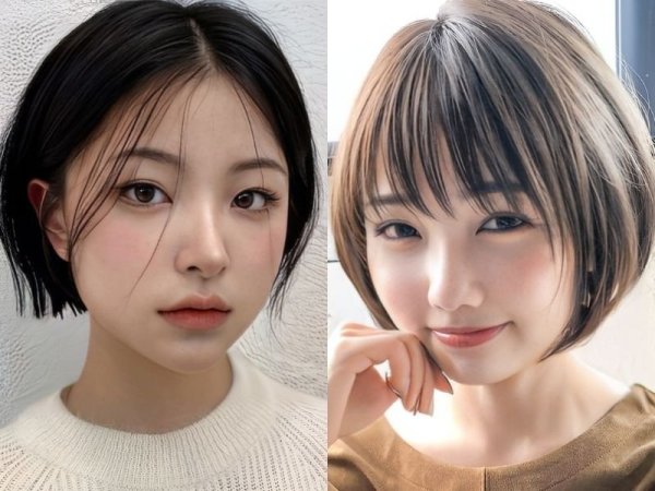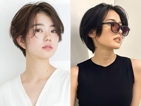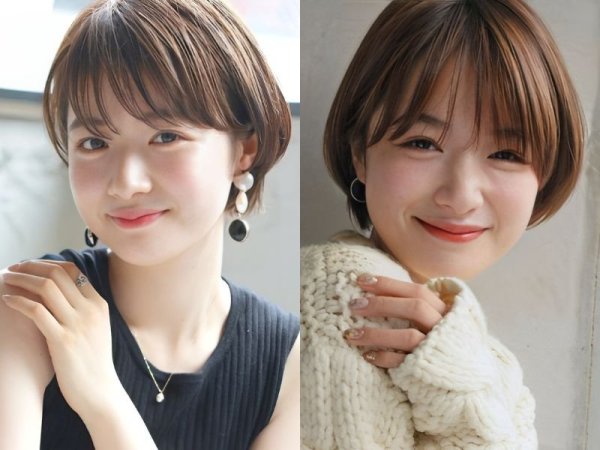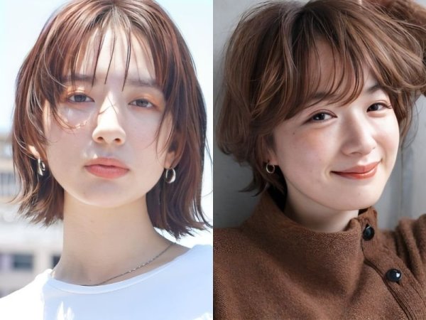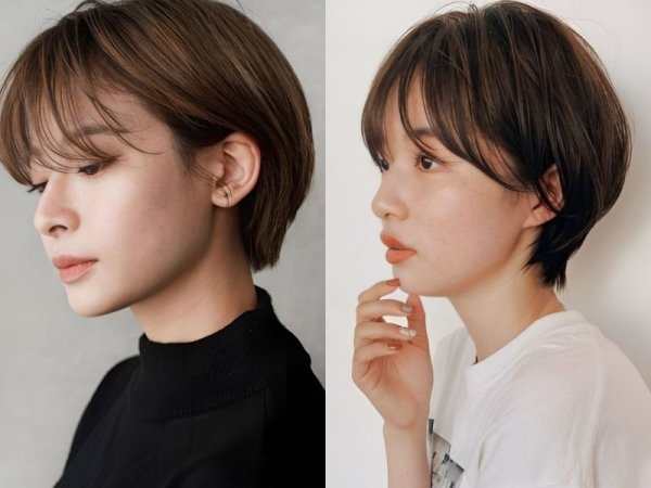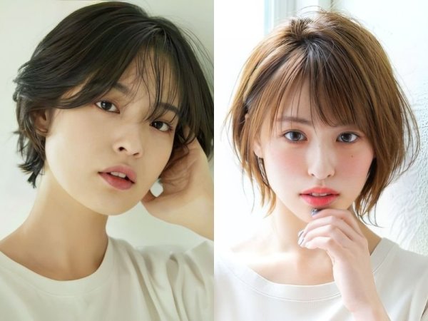 Kiểu tóc tém tomboy cho mặt tròn (Nguồn: beauty.yahoo.co.jp, folk.media.com) Làm xoăn nhẹ để kiểu tóc trông bồng bềnh và quyến rũ hơn (Nguồn: beauty.hotpepper.co.jp, K Beauty Addiction)Tóc tomboy 2 mái mặt tròn sành điệu