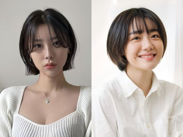 Tóc mái thưa sẽ là lựa chọn hoàn hảo giúp che khuyết điểm vầng trán (Nguồn: folk.media.com, K beauty Addiction) Kiểu tóc ngắn tomboy cho mặt tròn trán ngắn (Nguồn: K Beauty Addiction, lalahair.co.jp)Tóc tomboy cho mặt to che khuyết điểm hoàn hảo