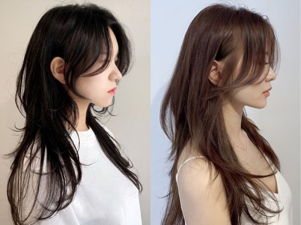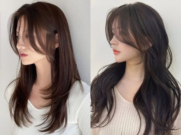 Mái bay khi kết hợp cùng tóc dài uốn xoăn hay tóc dài thẳng tự nhiên đều mang đến cho các bạn nữ nét dịu dàng, thanh lịch đậm chất Hàn Quốc. Bên cạnh đó, bạn có thể kết hợp nhuộm những màu như nâu hạt dẻ, nâu xám,… để trông nổi bật hơn nữa nhé!