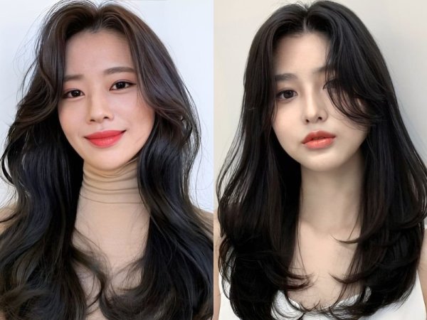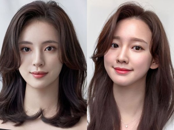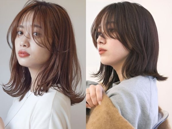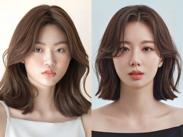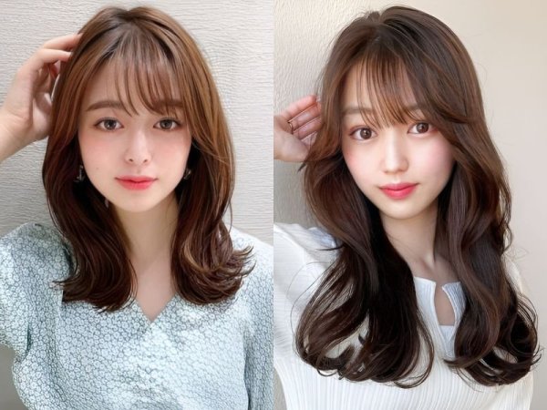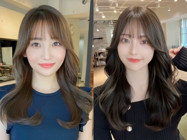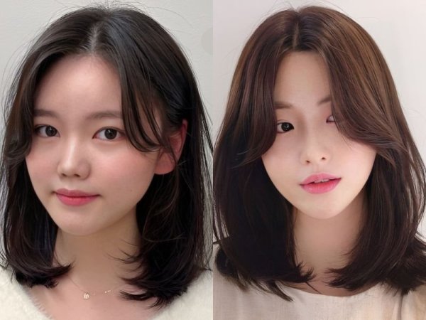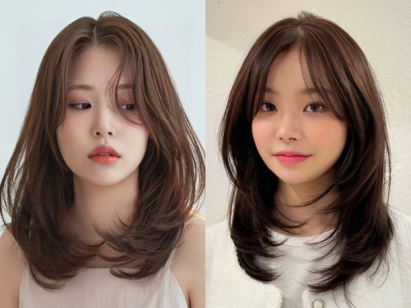 Tóc layer nữ mặt tròn có mái bay (Nguồn: HAUM, hadsiver.com) Tóc layer mái bay cho mặt tròn (Nguồn: hadviser.com, kbeautyaddiction.com)> Xem thêm: 25+ mẫu tóc layer hot năm 2023 cho nhiều dáng mặt khác nhau