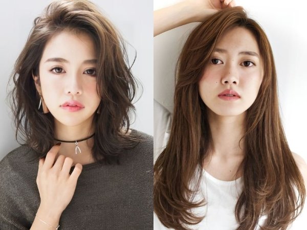 Tóc mái bay dài cho mặt tròn (Nguồn: HAUM) Tóc mái bay dài nữ tính, thanh lịch cho gương mặt tròn (Nguồn: kbeautyaddiction.com, gangbeauty.com)Tóc mái bay layer cho mặt tròn