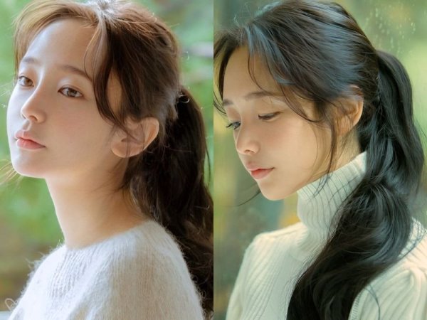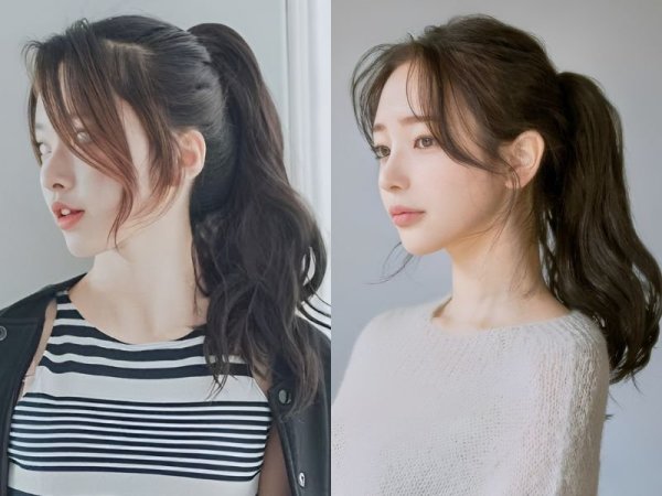 Các cô nàng mặt tròn thường e ngại khi buộc tóc vì sợ lộ khuyết điểm gương mặt to thì có thể cân nhắc kết hợp để mái bay. Kiểu tóc này vừa mang đến sự gọn gàng, chỉn chu, vừa có khả năng che đi đường nét tròn trịa trên gương mặt.