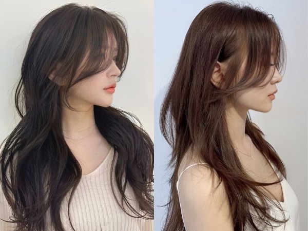 Tóc hai mái nữ dáng dài xuôi theo gương mặt giúp bạn khéo léo che đi các khuyết điểm như thái dương hóp, gò má cao, xương quai hàm góc cạnh,… Đây cũng là kiểu tóc mang đến vẻ dịu dàng, thanh lịch, nữ tính.