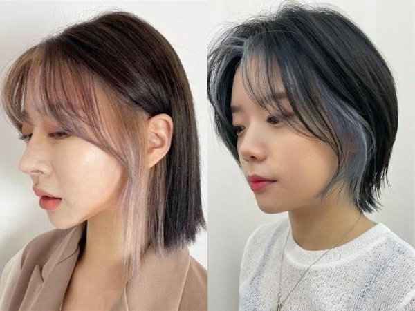 Tóc mái dài hai bên (Nguồn: 디오브 도산, Herlina H – Pinterest) Tóc mái dài hai bên (Nguồn: kbeautyaddiction.com)Tóc mái dài rẽ ngôi giữa