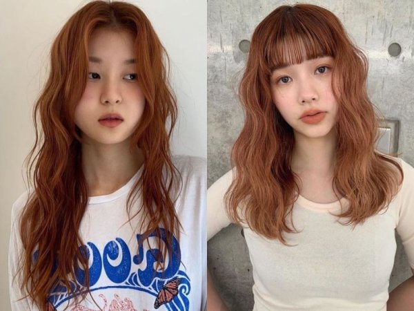 Màu nâu ánh đồng nghiêng cam là màu nhuộm tóc nữ sáng da phù hợp với các bạn có da vàng, da tone ấm (Nguồn: Đỏm+ – Pinterest, ♡ – Pinterest) Màu tóc này có sự biến hóa linh hoạt tùy điều kiện ánh sáng (Nguồn: Kbeauty Addiction | Beauty & Lifestyle – Pinterest, VOH – Pinterest)Màu nâu mật ong