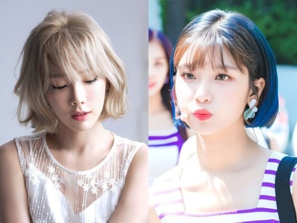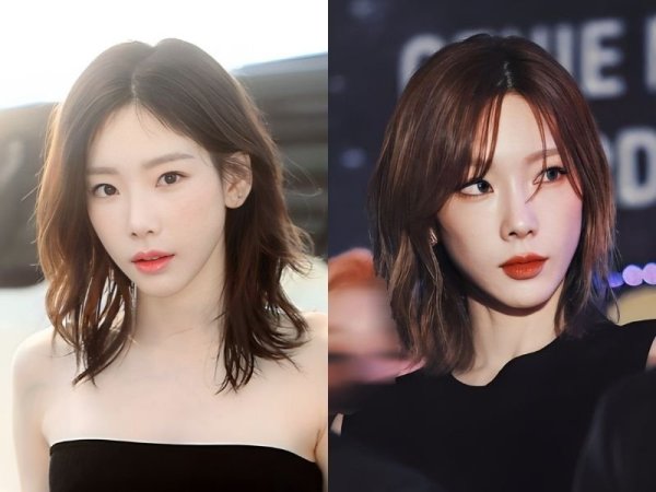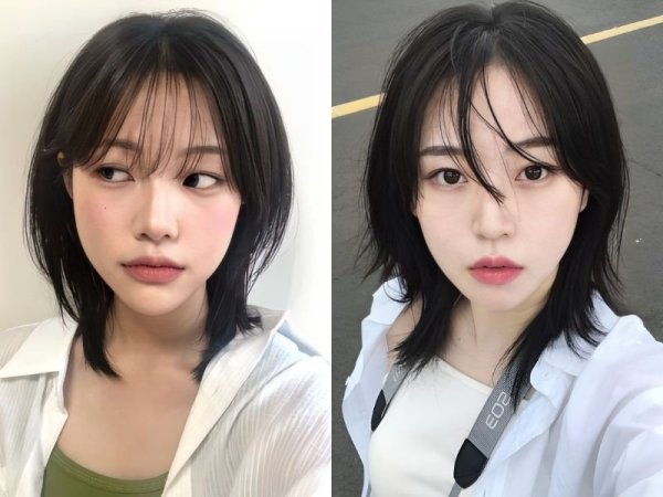 Kiểu tóc ngắn ngang vai đem lại vẻ ngoài nhẹ nhàng và nữ tính (Nguồn: Fansite SprettyO, Studio Namwonhyeon) Kết hợp cùng tóc mái dài giúp che khuyết điểm xương hàm hoàn hảo (Nguồn: Fansite Pumpkin, Taeyeonie – Pinterest)Tóc ngắn mullet kết hợp mái bay