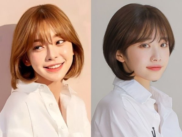 Kiểu tóc ngắn cho mặt vuông to che khuyết điểm hiệu quả (Nguồn: Trendy Hairstyle Ideas, K Beauty Addiction) Kiểu tóc ngắn nữ mặt vuông sành điệu và cá tính (Nguồn: Fansite HYO, Trendy Hairstyle Ideas)Tóc ngắn mái thưa – tóc mái cho mặt vuông trán ngắn