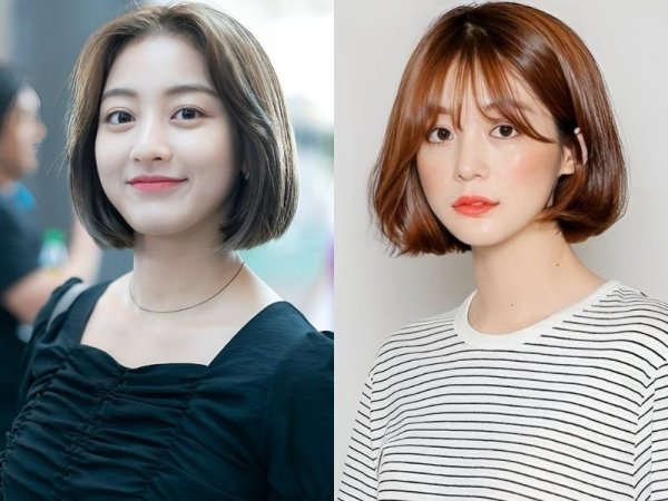 Kiểu tóc duỗi ôm sát khuôn mặt, tôn lên những đường nét nổi bật (Nguồn: yan.vn, voh.com.vn) Kiểu tóc ngắn cho mặt vuông được các cô nàng ưa chuộng (Nguồn: Korean Hairstyle, CHUU)Tóc ngắn uốn chữ C – tóc ngắn cho mặt vuông to