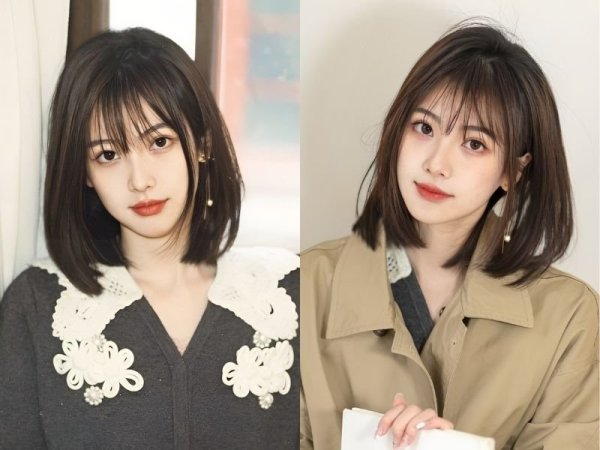 Kiểu tóc mái cho mặt vuông che khuyết điểm xương hàm hiệu quả (Nguồn: K Beauty Addiction, CHAHONG) Tóc mái bay có độ phồng và cong nhẹ, tạo hiệu ứng khuôn mặt mềm mại và thanh thoát (Nguồn: voh.com.vn, yan.vn)Tóc lob mái dài cho mặt vuông