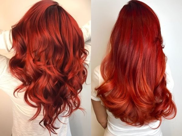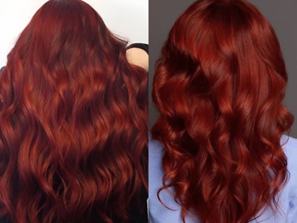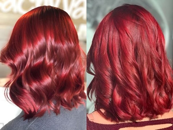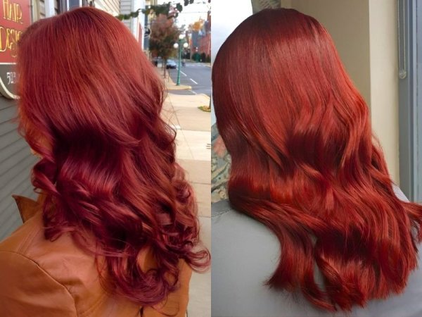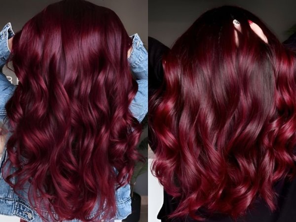 Tóc đỏ rượu vang truyền thống (Nguồn: Lillian, JJJ) Nhuộm tóc màu đỏ rượu vang truyền thống (Nguồn: behindthechair.com, feedingtrends.com)Tóc màu đỏ rượu tươi
