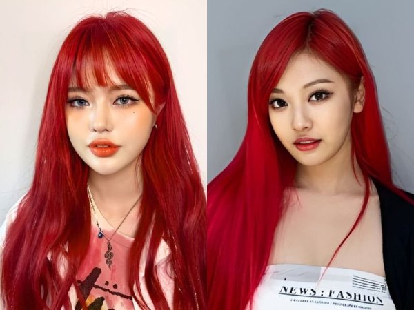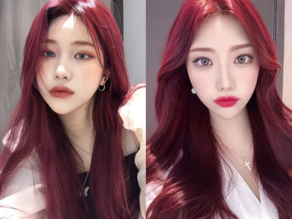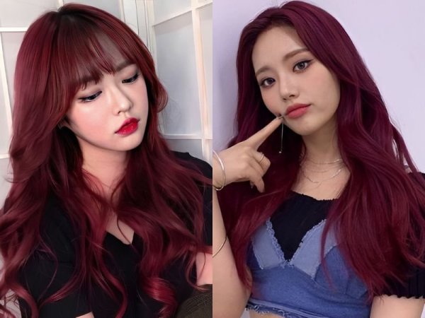 Tóc đỏ rượu tươi (Nguồn: amazon.com, Twitter aespa) Nhuộm tóc màu đỏ rượu tươi (Nguồn: melontea43.tumblr.com, Sytime)Tóc màu đỏ rượu trầm